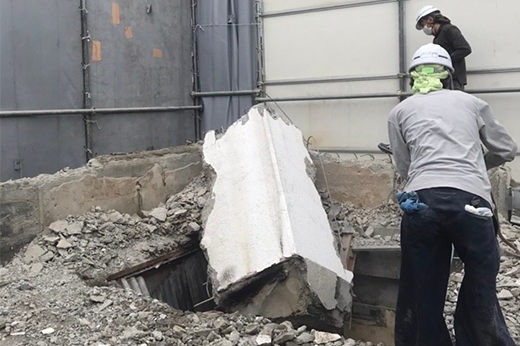鉄筋コンクリート造解体工事 concrete コンクリートで補強された鉄筋造の建築物の解体を承ります。強度の強い建物ですので、その分解体にも時間がかかります。建物の構造・大きさ、近隣の環境なども踏まえて正確な見積もりをお出しします。